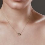 The EYE charm created by POLINA ELLIS, a symbol of protection. This delicate 14kt gold necklace is aligned with the designer’s geometrical stylistic identity of simple, clean lines: The eye is engraved and is accentuated by a white brilliant cut diamond in the middle, constituting a fine and elegant timeless piece.