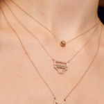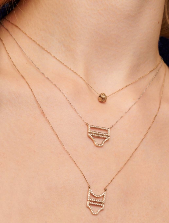 This sophisticated 18kt gold necklace with brilliant cut diamonds represents the emblematic Minoan Taurus and exhibits dynamism by subtraction. It’s an ideal choice for the admirers of modern/classic fine jewellery pieces.